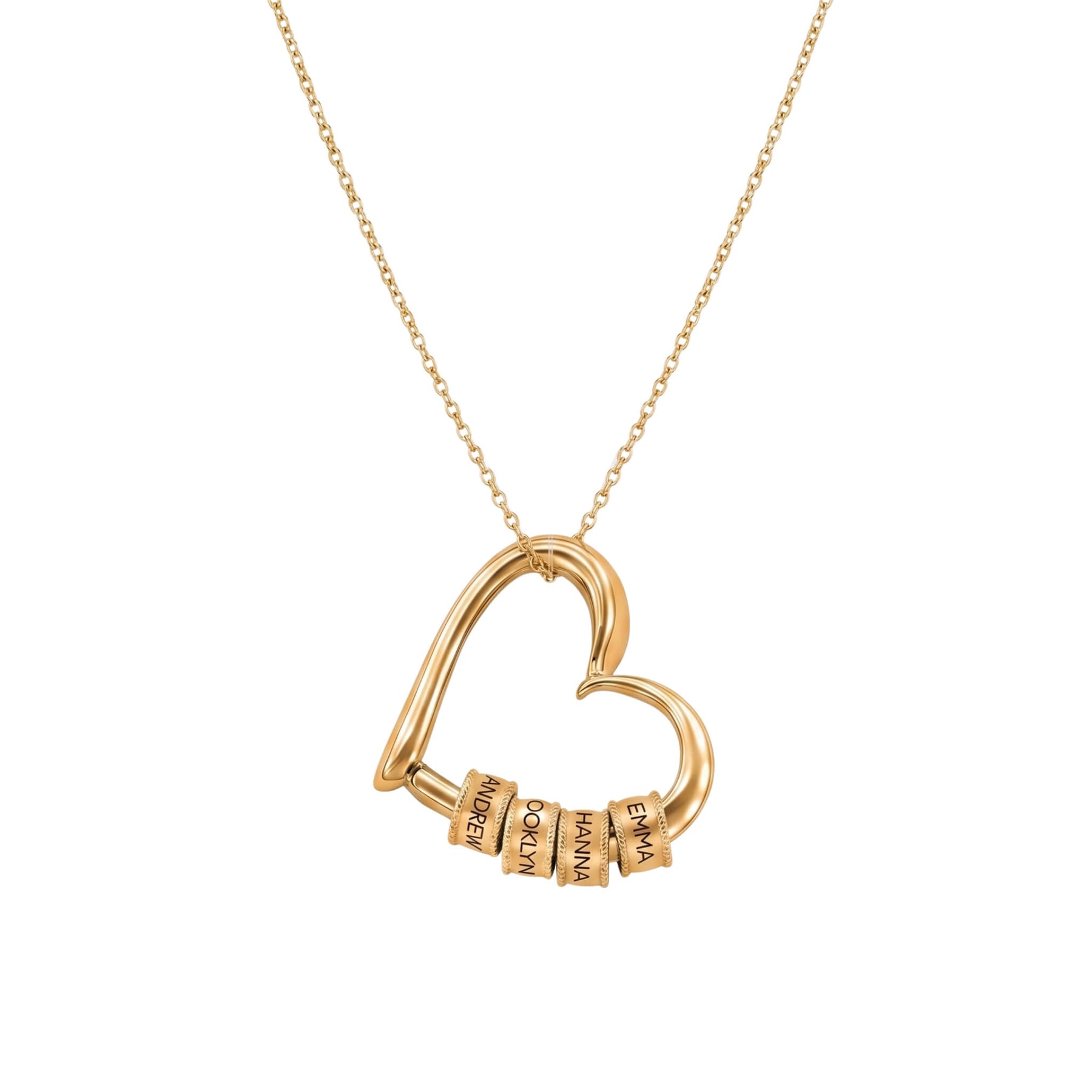 Ao longo do arco do coração estão pequenos charms gravados, um para cada nome que significa algo. Ficam juntos e lembram-te todos os dias que nunca estás sozinha – que estão sempre contigo, perto do coração.